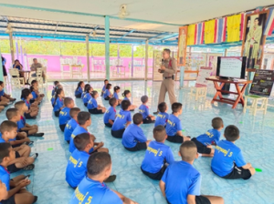 และได้ทำการซักซ้อมแผนเผชิญเหตุโดยสมมุติสถานการณ์ มีบุคคลคลุ้มคลั่ง ถืออาวุธมีด เข้ามาในโรงเรียนจะทำร้ายนักเรียน โรงเรียนบ้านดอนตาลเซี้ยน มีจำนวน 147 คน