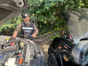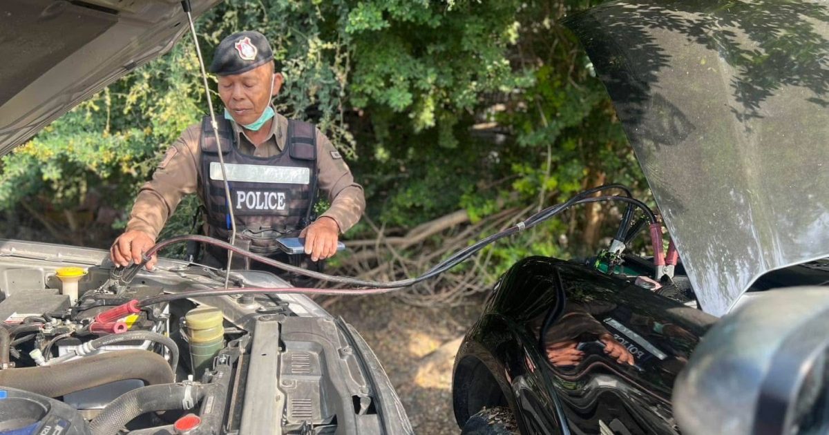 – รถยนต์กระบะ Mitsubishi Triton หมายเลขทะเบียน กต 6732 กาญจนบุรี แบตเตอรี่ไฟหมด จึงได้ช่วยจั๊มแบต และเดินทางต่อไปได้