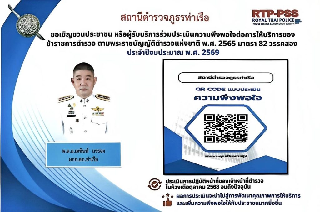 เมื่อวันที่ 20 ต.ค.68 เวลา 13.00 น. พ.ต.ท.กฤษวิศญ์ ขาวเก้า สวป.สภ.ท่าเรือ ปฏิบัติหน้าที่หัวหน้าจุดตร